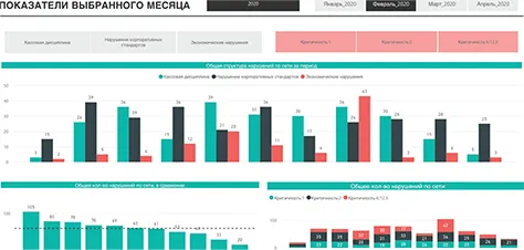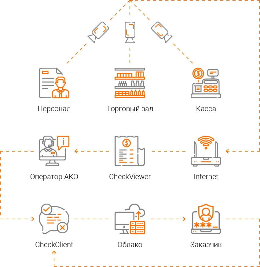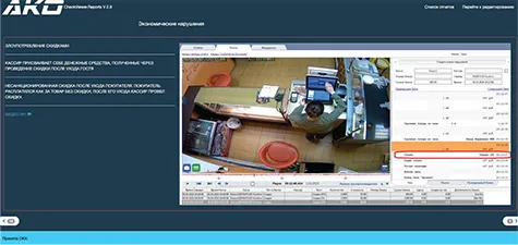 Для контроля кассы применяется система контроля кассовых операций Check Viewer, также возможно использование систем Set Prisma и TRASSIR Active Pos. Система контроля кассовых операций интегрирована с видеорегистраторами и кассовым программным обеспечением. Это событийная аналитика.